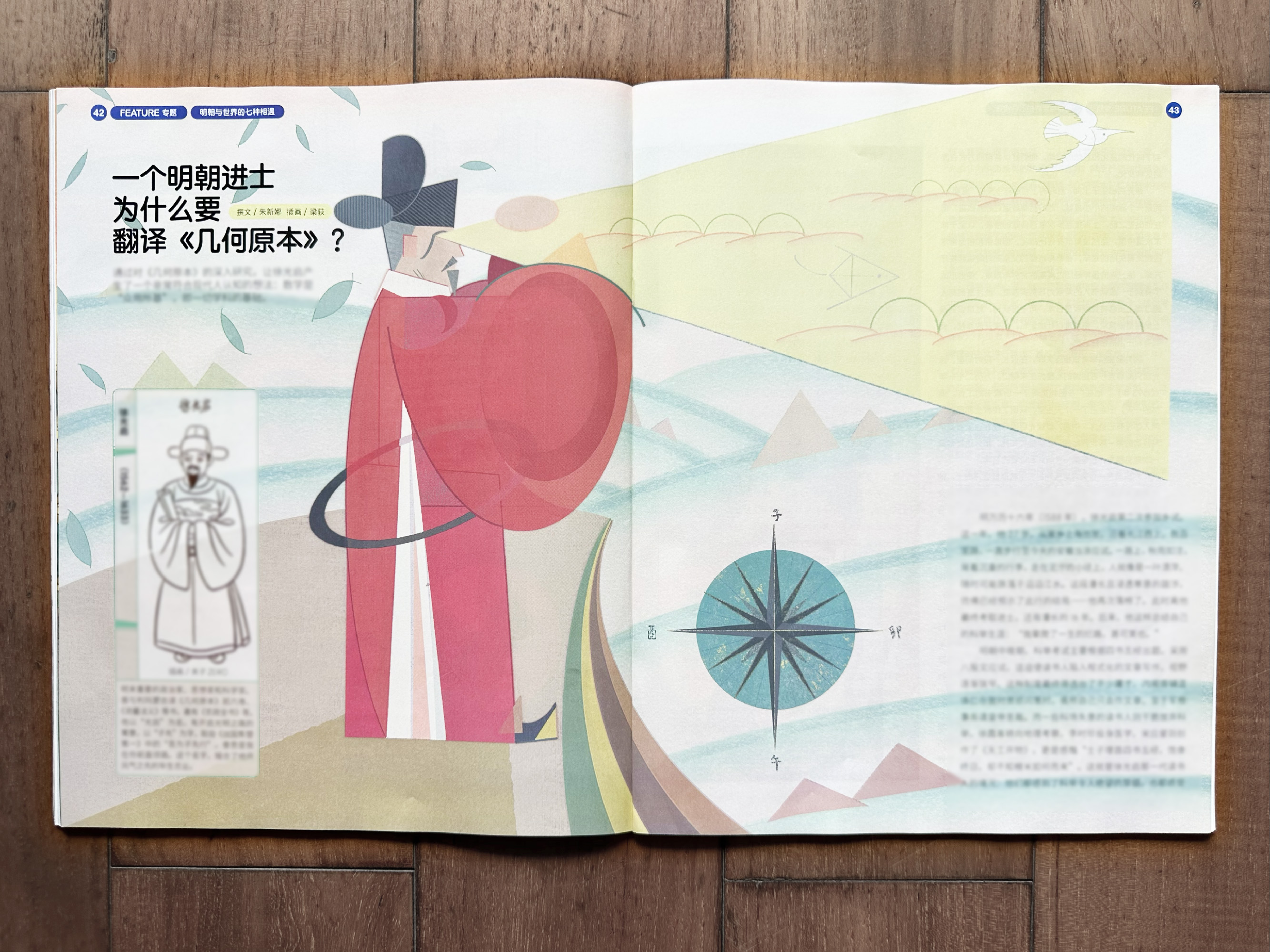 Editorial illustration for Youth Magazine 少年新知 (June 2025). This article introduced the Ming dynasty official Xu Guangqi, who first translated and brought geometric concepts into China.